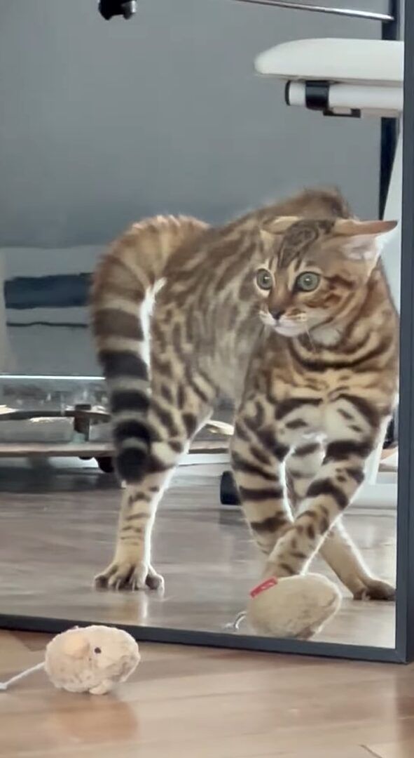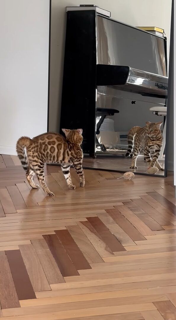 オモチャで遊んでいた子猫が鏡に反応した時の様子は、こちらの動画からご覧いただけます。