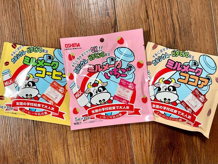 「前から売ってるから欲しかったんならいつでも買ったのにー」と言いながら、ミルメークのコーヒー味、ココア味、いちご味を購入しました。