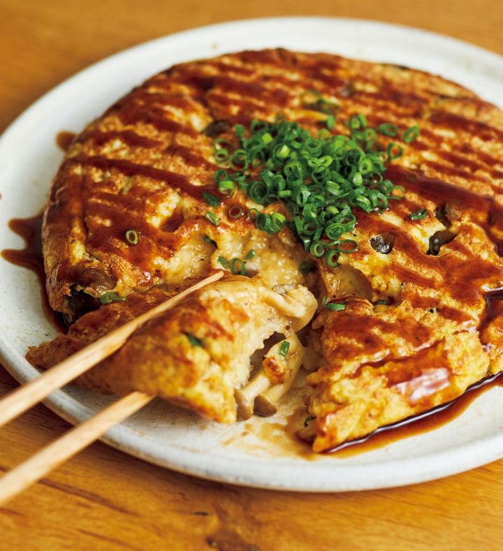 お好み焼きみたいだけど、小麦粉を入れずに仕上げるから見た目よりもとっても軽やか! とろろのふわふわっとした食感にソースがマッチして、ペロリと完食しちゃいます!