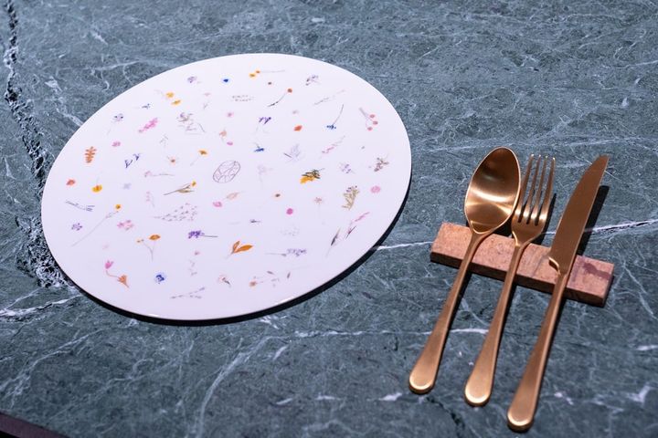 店内の壁には、アフタヌーンティーの食器と同じくPAYSAGEのキービジュアルである自然の草花のドライフラワーが施されていて、どこかヨーロッパの田舎町を彷彿とさせる雰囲気でした。フランス語で「風景」や「景色」を意味するPAYSAGEのエッセンスを体感できそうなシェフズテーブル、4月のオープンが待ち遠しいですね!