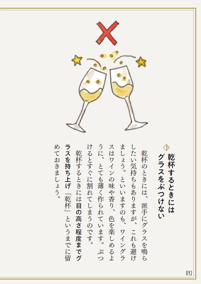 テーブルマナーと比較して、思いのほかワインマナーを学ぶ機会は少ないもの。そこでこれから全3回に渡って、イラストレーターでワインエキスパートの資格を持つTamyさんの新刊「世界一おいしいワインの楽しみ方」(三笠書房/知的生きかた文庫)から、知ればすぐに役に立つワインの豆知識やワインマナーをご紹介します!