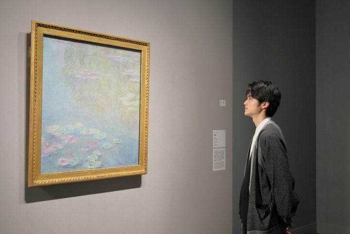 クロード・モネ《睡蓮》を鑑賞する鈴鹿さん。