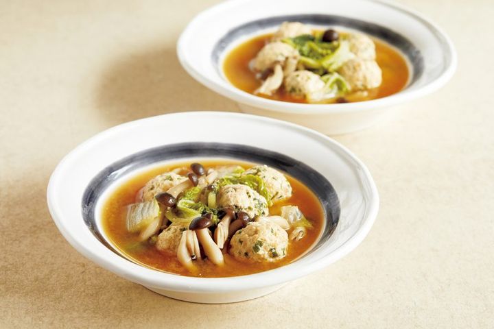 鶏むね肉なのにしっとりやわらか。ごろごろ肉団子入りの和風スープ。