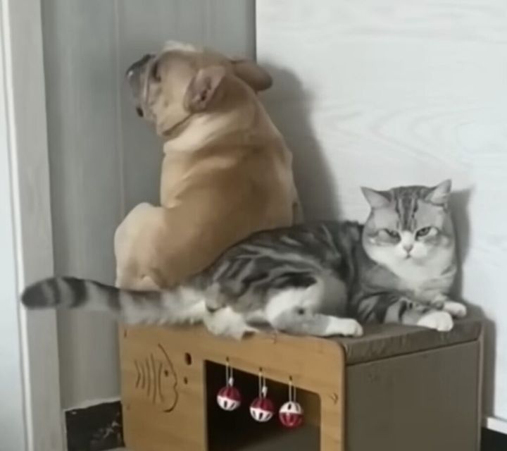 3. 怒られるって分かっているのに、それでも猫さんの隣にいたいワンコ