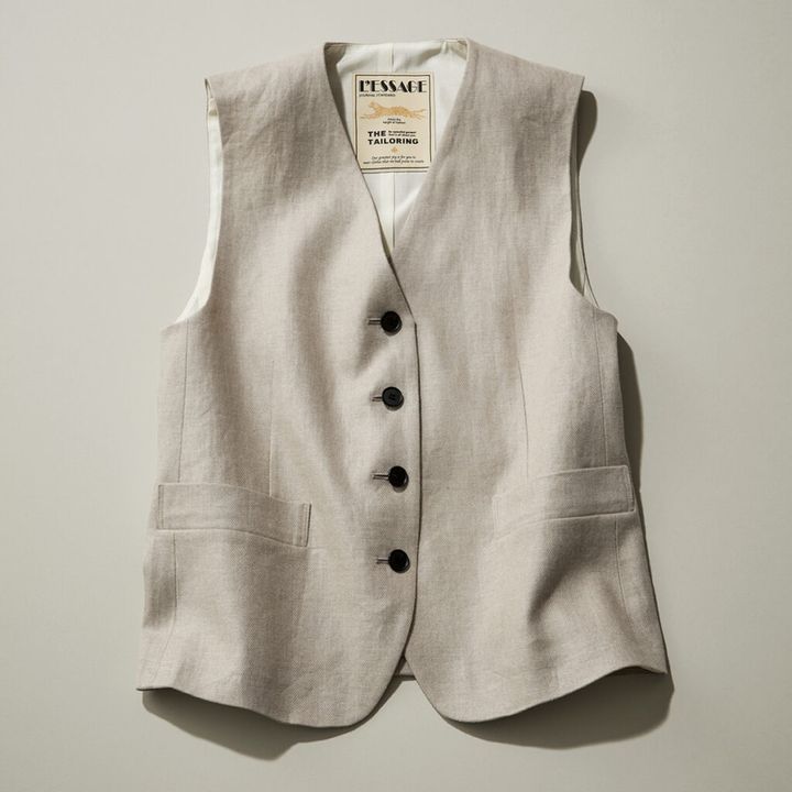 春先から夏、秋までシーズンレスで着られるリネン素材。ジレ¥30,800(ジャーナル スタンダード レサージュ/ジャーナル スタンダード レサージュ 丸の内店)