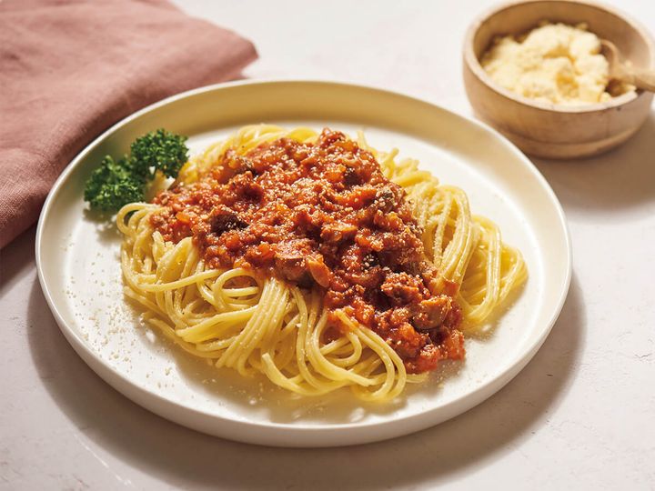 一皿で満足できる主役級の麺料理の中でも、肉のうまみを存分にいただけるミートソースが彼ウケよし! レンチンでも本格派の味に。