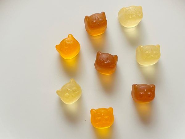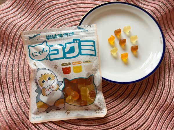 よく見ると、小さいグミの一つ一つに「mofusand」ネコの顔が描かれています。小っちゃいのに、ちゃんと表情があって、めちゃ可愛い…。味はコーラ・みかんソーダ・ホワイトソーダと三毛猫みたいな色の3種アソートです。