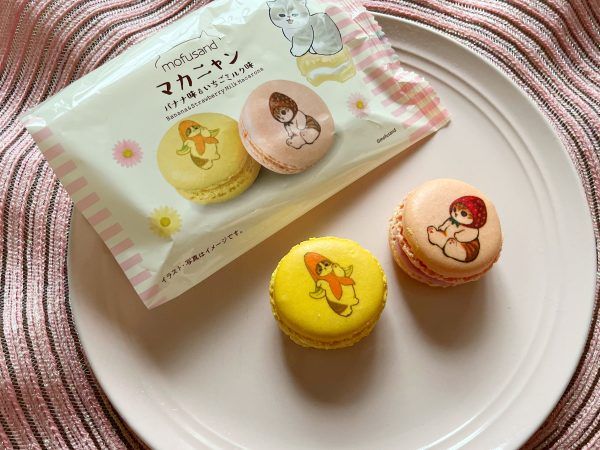 バナナ味といちご味の2種類が楽しめるマカロンは、「mofusand」のイラストが描かれていて、食べるのがもったいないくらい可愛い♪