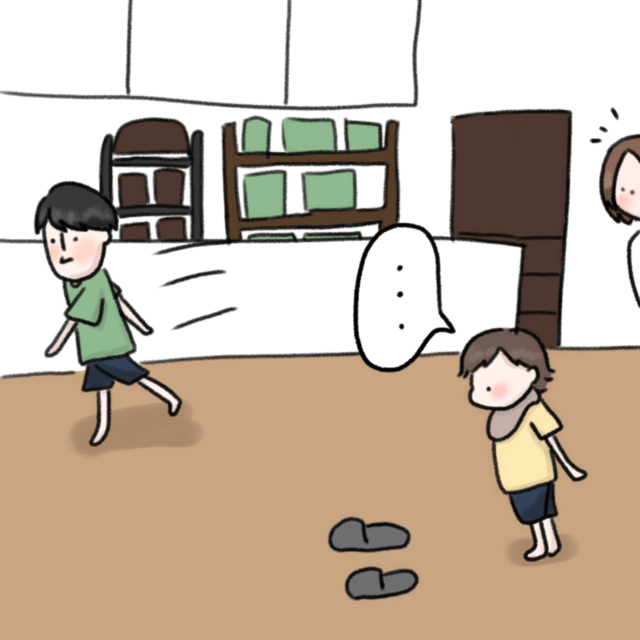 2歳の男の子みぃくんのお母ちゃんであるねむりひつじさんから、大人と同じことがしたいみぃくんのお話です。スリッパを履いて歩くパパの足元を見ていたみぃくん。パパが脱いだスリッパをじっと見つめていると思ったら・・・。