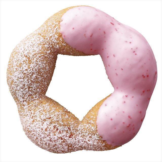 桜もち風味のもちっと生地に、桜あんホイップをサンドし、ストロベリーチョコをコーティング。仕上げにシュガーをまぶしたドーナツです。