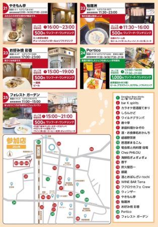 「物価高騰が騒がれている中、低価格での提供が難しくなっているにも関わらず協力してくださったお店さんには、感謝の気持ちでいっぱいです」と、同イベント実行委員会の担当者。この機会に、気になっていたお店を訪ねてみては。