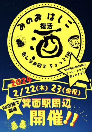 3. 【箕面】2月22日(木)・23日(祝・金) 「みのおはしご酒」5年ぶり復活! 阪急箕面駅周辺25店舗で楽しんで