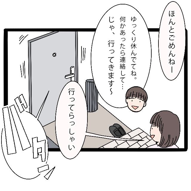 「ゆっくり休んでてね。何ああったら連絡して・・じゃ、いってきます~」