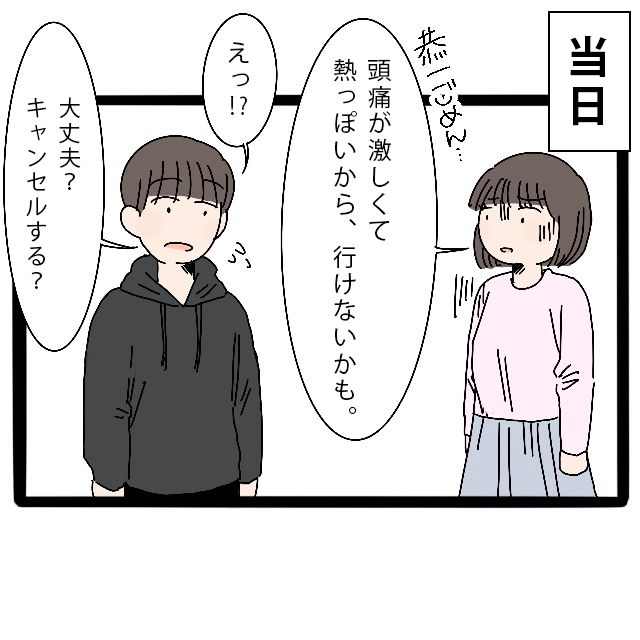 「恭一、ごめん・・頭痛が激しくて熱っぽいから行けないかも・・」