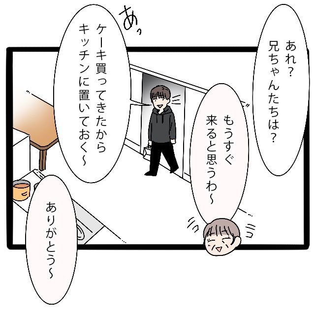 「あっ、ケーキ買ってきたからキッチンに置いておく~」
