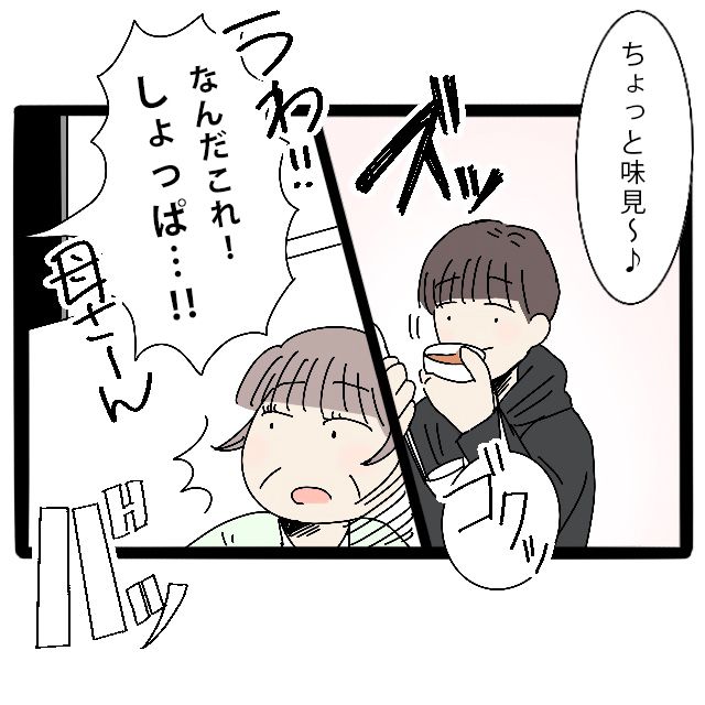 「うわ!!なんだこれ!しょっぱ・・!!母さーん!!」