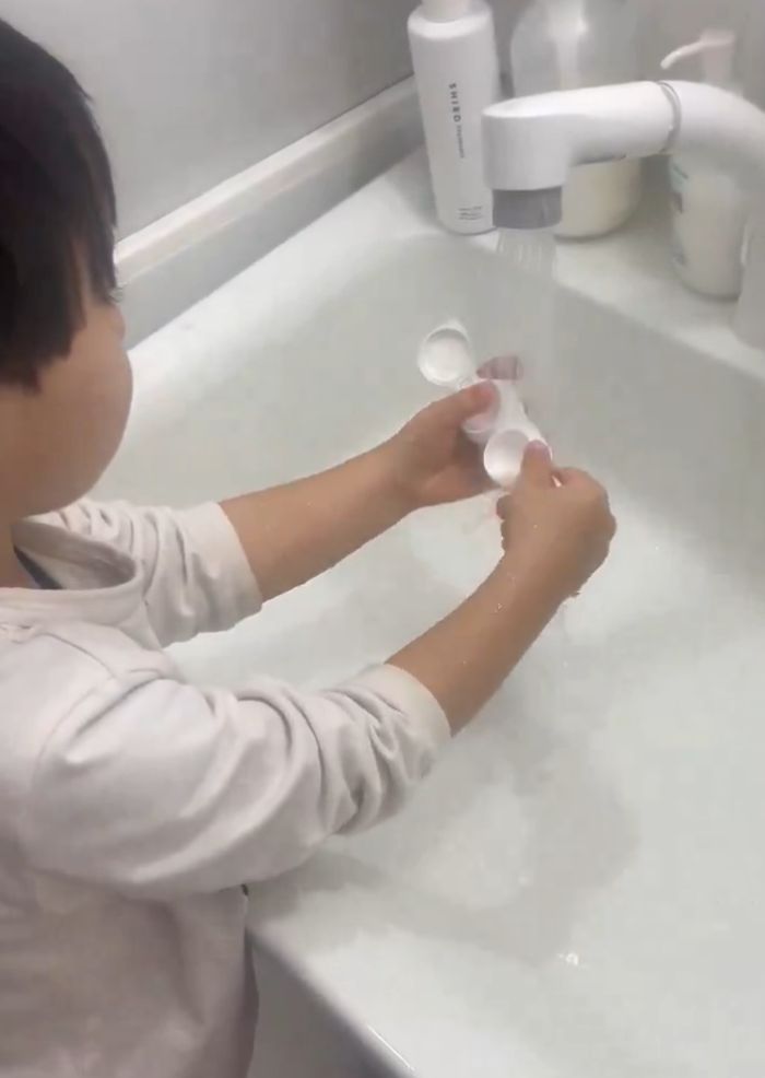 子供が自主的に家事を手伝ってくれたりすると、親としては嬉しいものですよね。 今回ご紹介するのは、父親のコンタクトレンズのケースを洗っている男の子の姿。 しかし、お手伝いしてくれて嬉しい!!となりきらなかったようです。