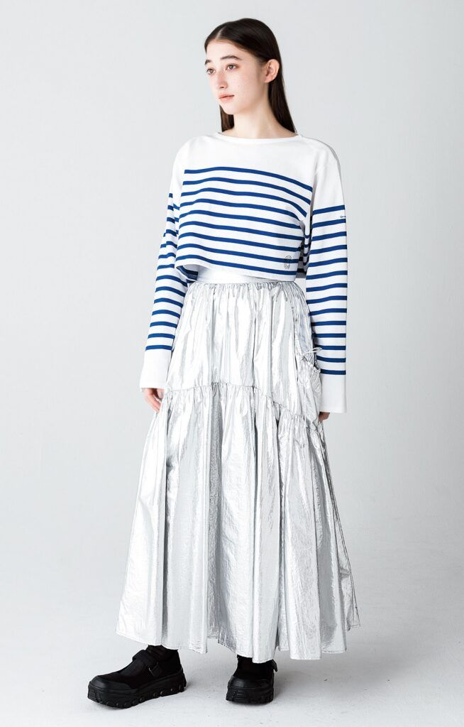 『ビオトープ』初の別注は、形をイチから制作したもの。トップス¥15,400(オーシバルフォー ビオトープ/ビオトープ TEL:0120・298・133) スカート¥17,930(リリー ブラウン/リリー ブラウン ルミネエスト新宿店 TEL:03・6457・8555) シューズ¥48,400(アモーメント cs@amomento.kr) ソックスはスタイリスト私物