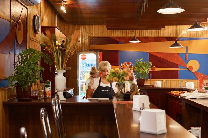建築巡りの途中にぜひ立ち寄りたいお店が、時間が止まったような懐かしさを感じるドーナツ店「スプルギネ」。1979年にオープンし、ソビエト占領下のカウナスの雰囲気が感じられる内装がレトロ。地元の人が次々とやってくる人気店です。