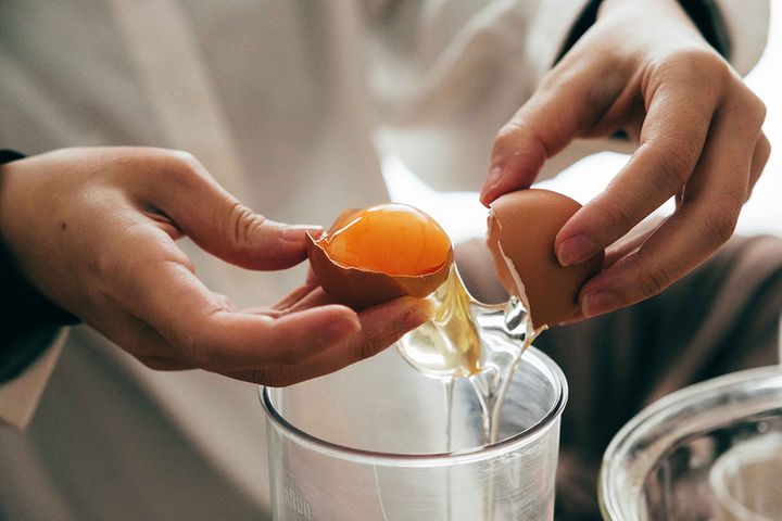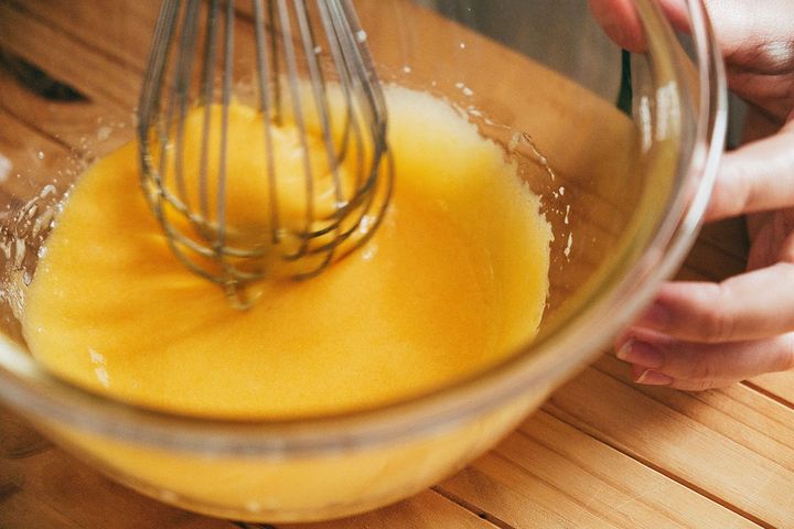 ボウルを2つ準備して、卵白と卵黄を分けていきます。最終的に卵黄のボウルに生地を合わせるので、サイズの違いがある場合は卵黄を大きいボウルに入れておくとまずは卵黄から使うので、卵白は冷蔵庫で冷やしておきましょう〜!