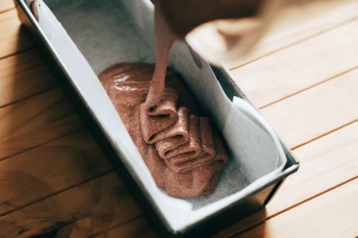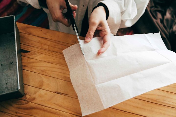 まずはパウンド型にクッキングシートをセット! シフォンケーキは空気の泡が潰れないように素早く作業するのもポイントのひとつ。準備は先に完了させておくと気が楽です。