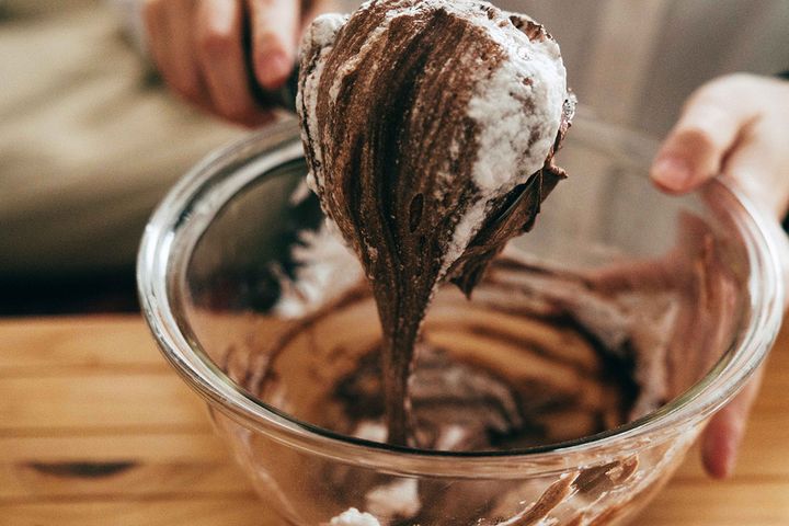 粉っぽさがなくなれば完了。ココアパウダーの割合多めなので、全体が濃く深い茶色になりますよ〜!