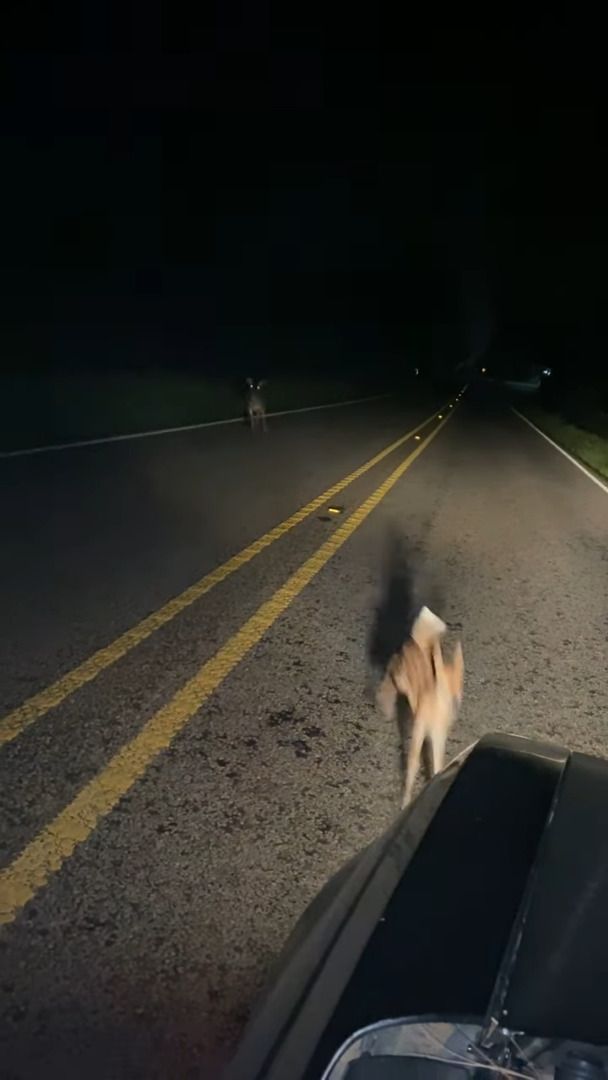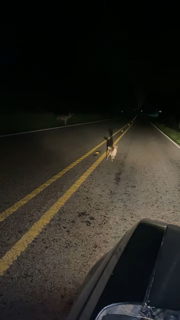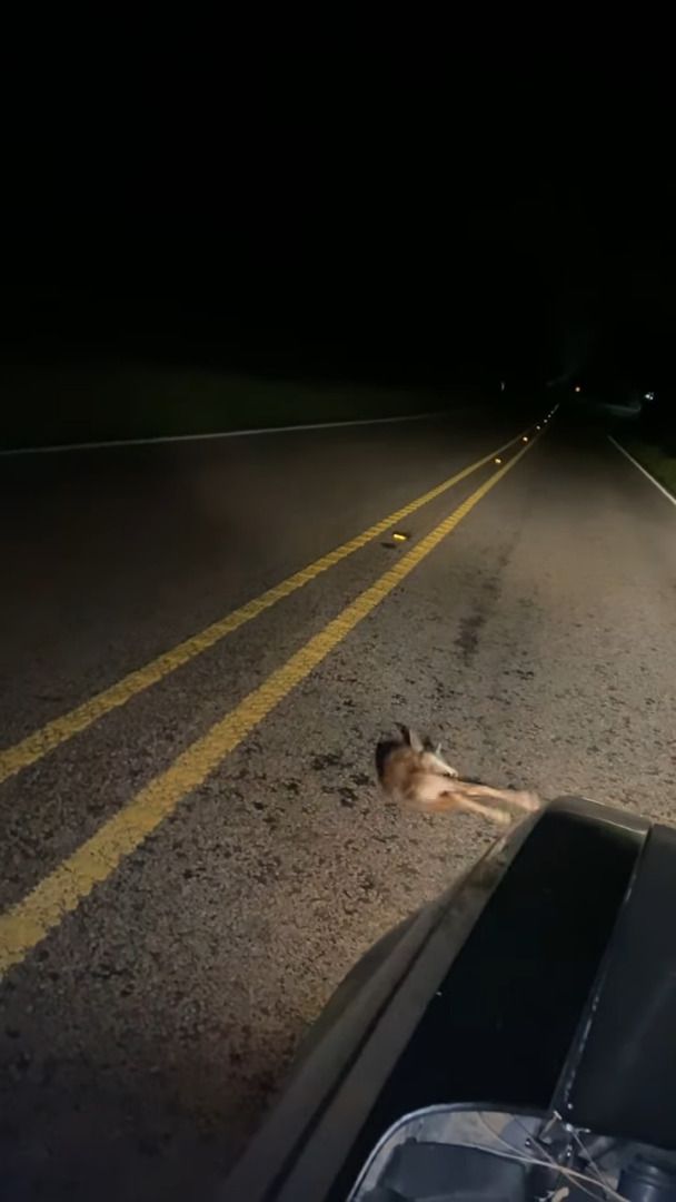 夜の田舎道で道路を横断しようとする鹿の親子を発見したドライバーの男性。 親子が安全に渡れるように停車して待っていると・・、子ジカがまさかの行動に出ました!!