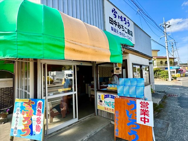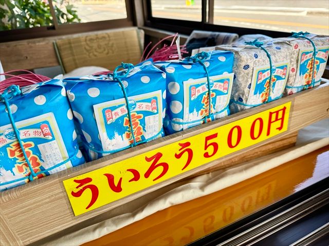 道路沿いに何軒も並ぶういろうのお店……。こんなに何軒もういろうのお店があったなんて。店内をチラッと覗きつつ、お目当てのういろうのパッケージがはっきりと見えたお店に吸い込まれるように入りました。「田中みちこ商店」さんです。