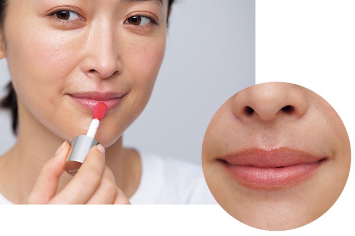 ベースメイク中にケアリップを仕込めばマットリップも乾燥知らず。リップメイクまで時間を置けば質感への影響もナシ。色つきタイプは血色感を与えてヘルシーに見せる効果も。