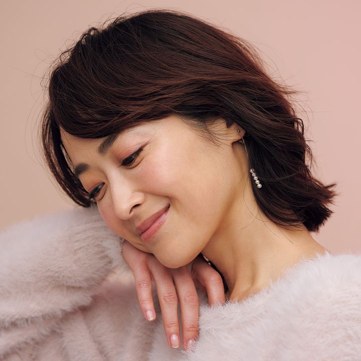 質感が柔らかいとうるおった印象に見える効果あり。ヘアスタイルは適度なボリュームと丸みがあるほうがベター。ツヤを出しすぎるとコントラストで肌が乾いて見えるので注意。