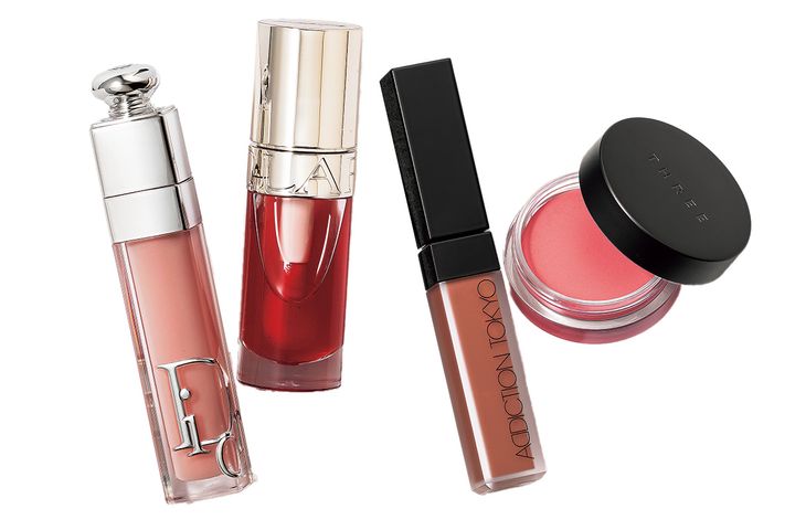 左から [鉄板ケアリップで淡い色と湿度を纏う] ツヤ、保湿、プランプのトリプル効果が持続。ディオールアディクトリップマキシマイザー 001 ¥4,620(パルファン・クリスチャン・ディオール)唇を長時間保湿するリップオイル。唇の水分量に反応し自分色に染めあげます。リップコンフォートオイル 08 7ml¥3,850(クラランス)[軽くほわりと色づく最旬マットカラー]軽さと見たままの発色が人気のマットリップの温もり色。アディクションザマットリップリキッド Mellow Brown ¥ 3,520 ※数量限定(ADDICTION BEAUTY)クリームが軽やかに伸びパウダリーな質感に変化。グラムトーンカラーカスタード 02 ¥3,300(THREE)