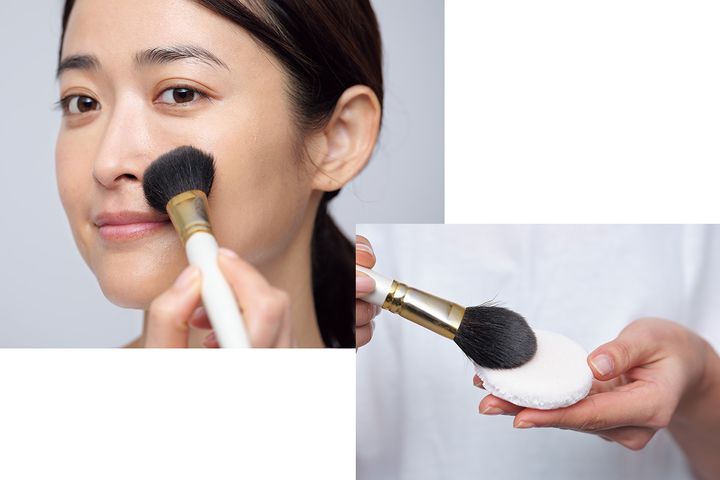 保湿を重視して薄膜に仕上げた肌は、パウダーを省略してもOK。メイク崩れ対策などで使いたい場合は、色やパールを控えたタイプを少量に留めて。