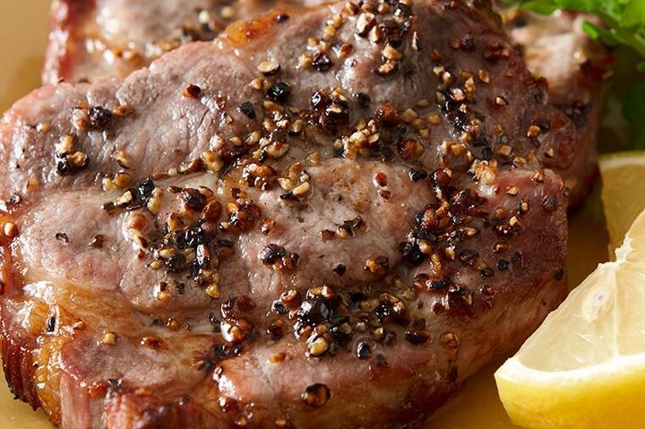 胡椒の香りと辛味がガツンときいたインパクトのあるポークステーキです。かたまり肉を厚く切ってつくると、迫力が出てご馳走感が大幅アップ!豚肩ロースのブロック肉を使った豪快な料理を料理研究家の大庭英子さんに教えてもらいました。