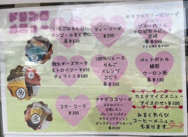 コーヒーや飲むスイーツやジュースなど、たくさんの種類のドリンクがあります。 飲むチーズケーキやティラミスも気になっています。