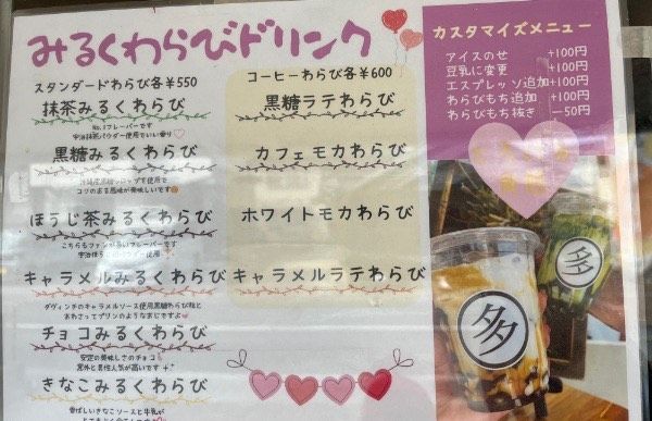 え!わらび餅がドリンク?どんな感じなのか食べてみたいと思い、すぐに向かいました。 その時は、きなこみるくわらびドリンクを飲みましたが、美味しかったですよ! 美味しい味はもちろんのこと、新食感を楽しめると思います。
