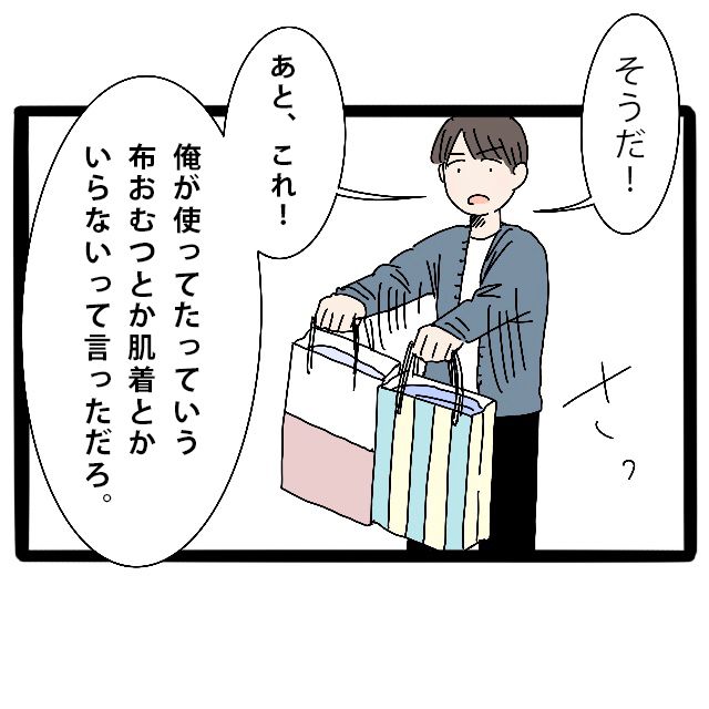 「そうだ!あと、これ!俺が使ってたっていう布おむつとか、肌着とか・・いらないって言っただろ」