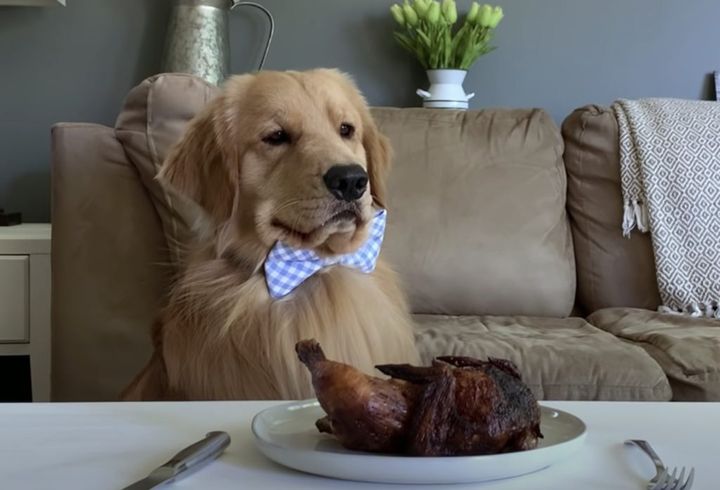 飼い主さんがチキンを焼いている時から