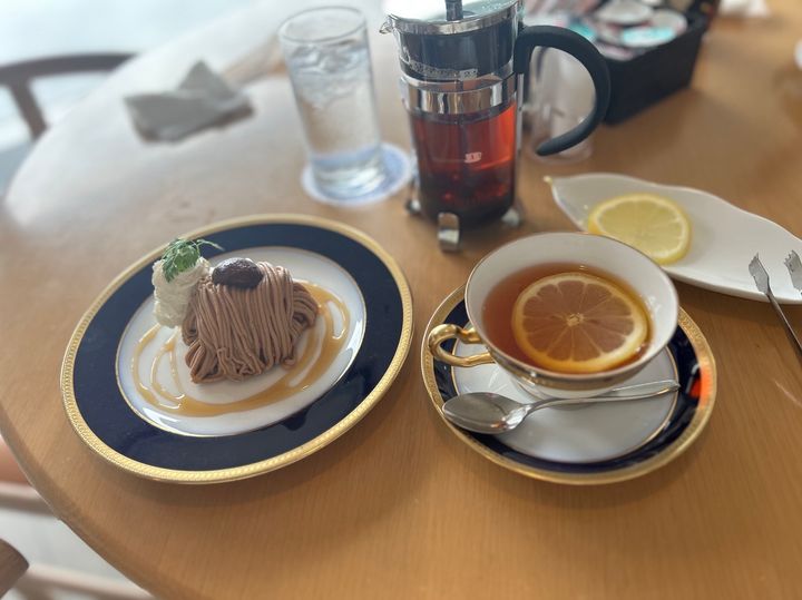 ケーキセットは日替わりです。この日はモンブランでした。レモンティーと共に。