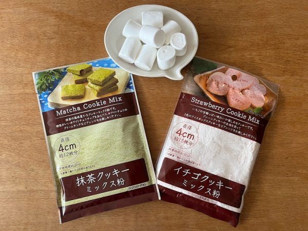 セリアのクッキーミックス粉は抹茶よりイチゴが多く余ってしまうので、お花に抜いたりしてもかわいいですよ!
