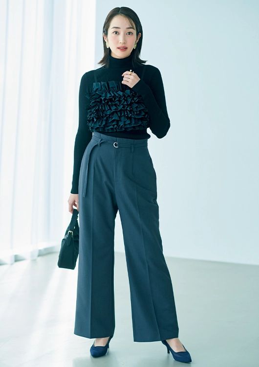 ビスチェ¥11,880/LILY BROWN ルミネエスト新宿店 ニット¥15,400/ルーニィ パンツ¥22,000/アルページュ ストーリー イヤリング¥2,640/mimi33(サンポークリエイト) リング¥5,720/ピンクオウルビジュー(ロードス) バッグ¥8,910/RANDA 靴¥18,700/銀座かねまつ(銀座かねまつ6丁目本店)