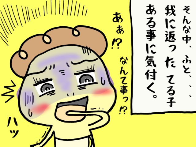 2男2女の4人きょうだいのママであり、初孫チビ太くんの誕生でおばあちゃんになったてる子さんから、孫育児のお話です。チビ太くんのお世話をするようになったてる子さん、仕事場で品出し中にふとある事に気付き・・・。
