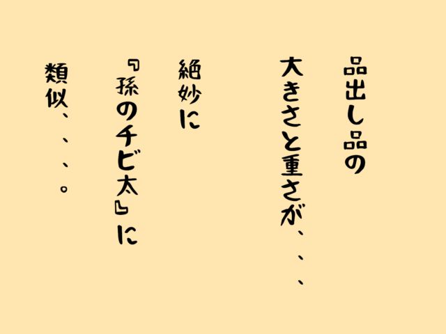 それは・・・品出ししていた商品の大きさと重さが絶妙に孫のチビ太くんに似ていたから!