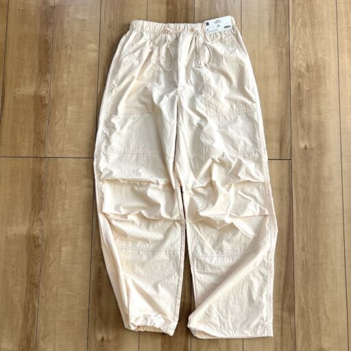 大人世代のファッションにおいてトレンドを押さえることだけでなく、快適さや実用性も重要なポイント。そこでおすすめのアイテムが履くだけで着映える「パラシュートパンツ」になります。中でも【GU】の「テックパラシュートプルオンパンツ」のライトオレンジは淡いコーラルカラーが春らしさたっぷりで、女性らしさを醸せるのが魅力です。