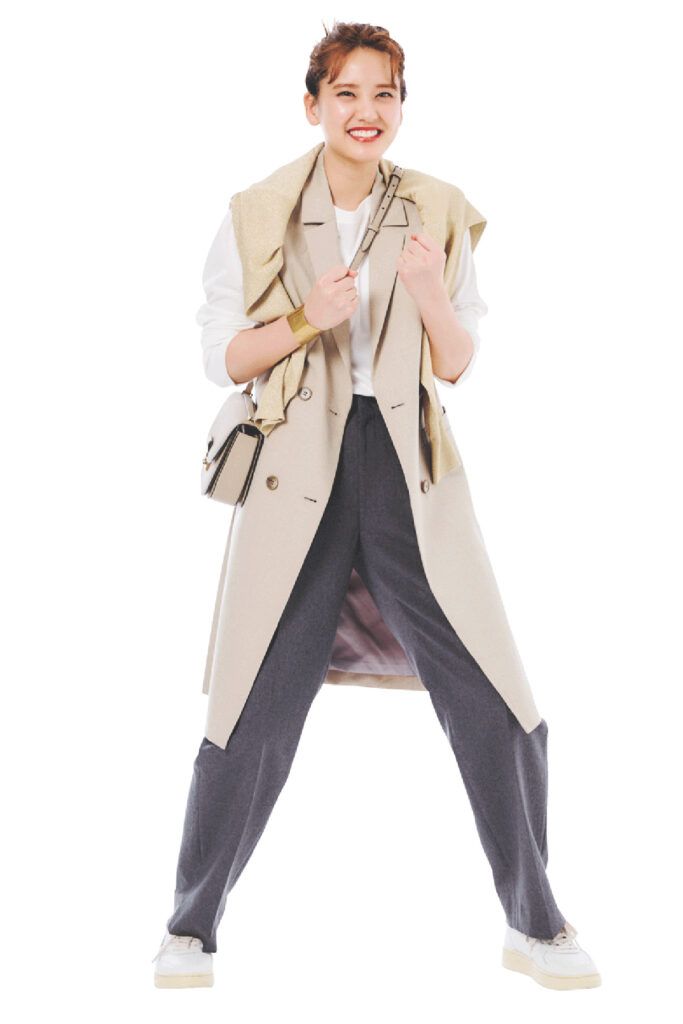 ラメカーデ着回し ジレ¥35,200(ルーニィ)ロンT¥11,550(スローン/ザ ショップ スローン 新静岡セノバ店)グレーパンツ¥23,100(ザ シンゾーン/シンゾーン 表参道本店)バッグ¥159,500(ボナベンチュラ)スニーカー¥37,400(オートリー/トヨダトレーディング プレスルーム)バングル¥18,260(ソコ/ZUTTOHOLIC)