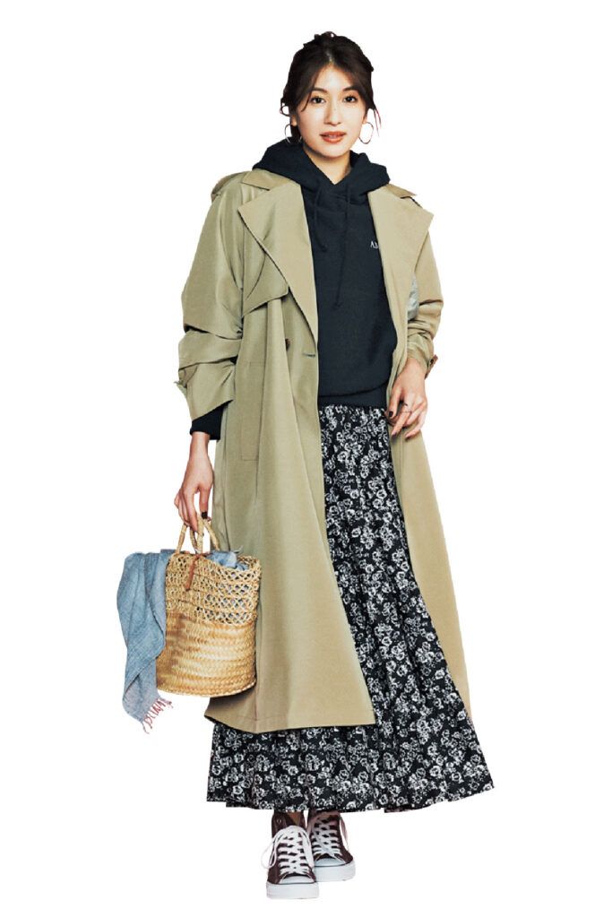 【ドロップショルダートレンチコート】×【フーディ】