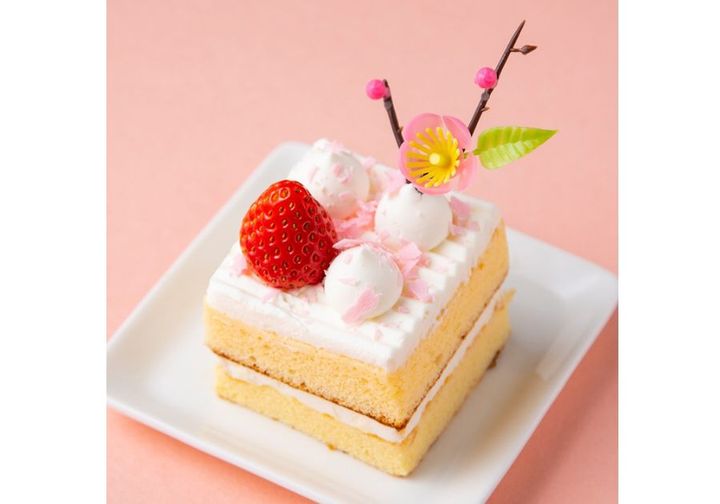続いて紹介するのは「桃の節句 ショート」。『シャトレーゼ』の通常メニューでも大人気のショートケーキですが、こちらはひなまつり限定バージョン。桃の花のモチーフと、桃の花びらのようなピンクのチョコレートがかわいらしくトッピングされています。ふんわりとしたスポンジには、ホワイトチョコチップ入りホイップクリームをサンドし、仕上げにいちごをトッピング。飽きのこないおいしさは誰からも愛される味わいで、200円台で購入できるコスパの良さも魅力。子どもたちのひなまつりパーティーや、手土産にも喜ばれること間違いなしの春らしいショートケーキです。