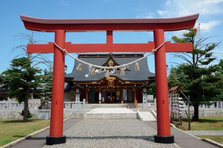 北海道の3大パワースポットにも選ばれている美瑛神社。鳥居を抜けた正面にはハートマークの装飾が。境内には多くのハートマークが隠れていて、見つけるほど恋愛運が上がるとか♡