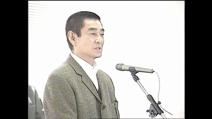 映画「鉄道員(ぽっぽや)」の完成を報告する高倉健さん(1999年)