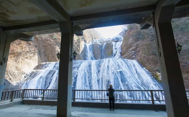 滝を間近で鑑賞したいのなら「袋田の滝トンネル」へ。トンネルの奥に設置された観瀑台は2台あり、第一観瀑台からは滝を下から見上げることができ、第二観瀑台からは滝を上から見下ろすことができます。違う角度から、流れる水の迫力とスケールを体感できますよ。さらに、滝川の対岸へ渡る吊り橋への通路も。この吊り橋からは、悠々とした滝の姿を眺められます。