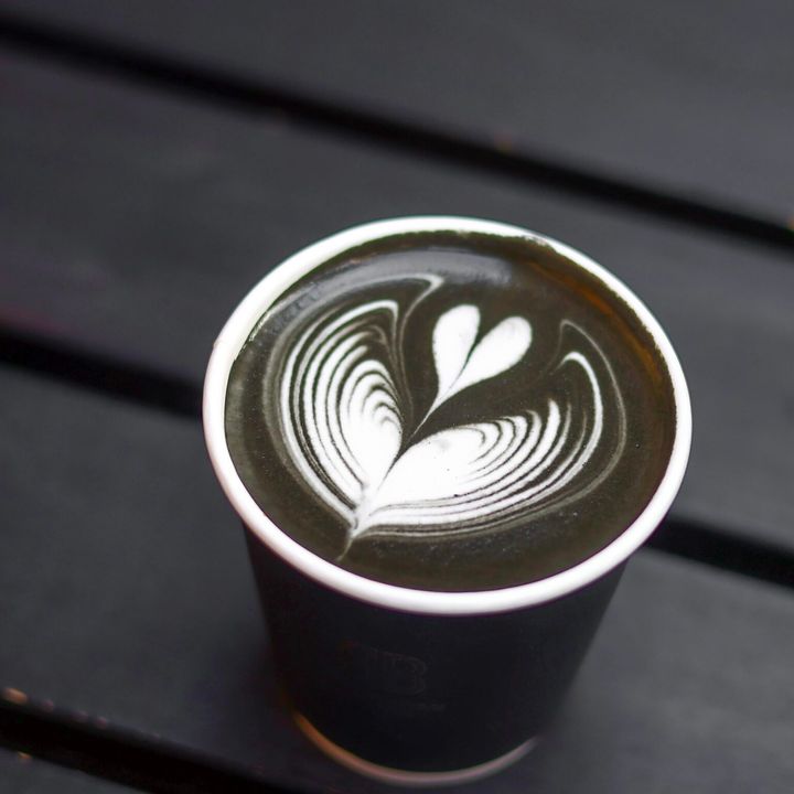 同空間に併設されたコーヒースタンドBLACKSWAN〉(ブラックスワン)では、コーヒーやカフェラテなどのドリンクが提供されていて、テイクアウトはもちろん、店内・店外に配されたベンチでパンとともにいただくことが可能。黒と白のバイカラーが映える、エスプレッソと竹炭をブレンドした「ブラックラテ」は、なかなかにダークな色合いをしているけれど、お味はとってもやさしいというギャップが。